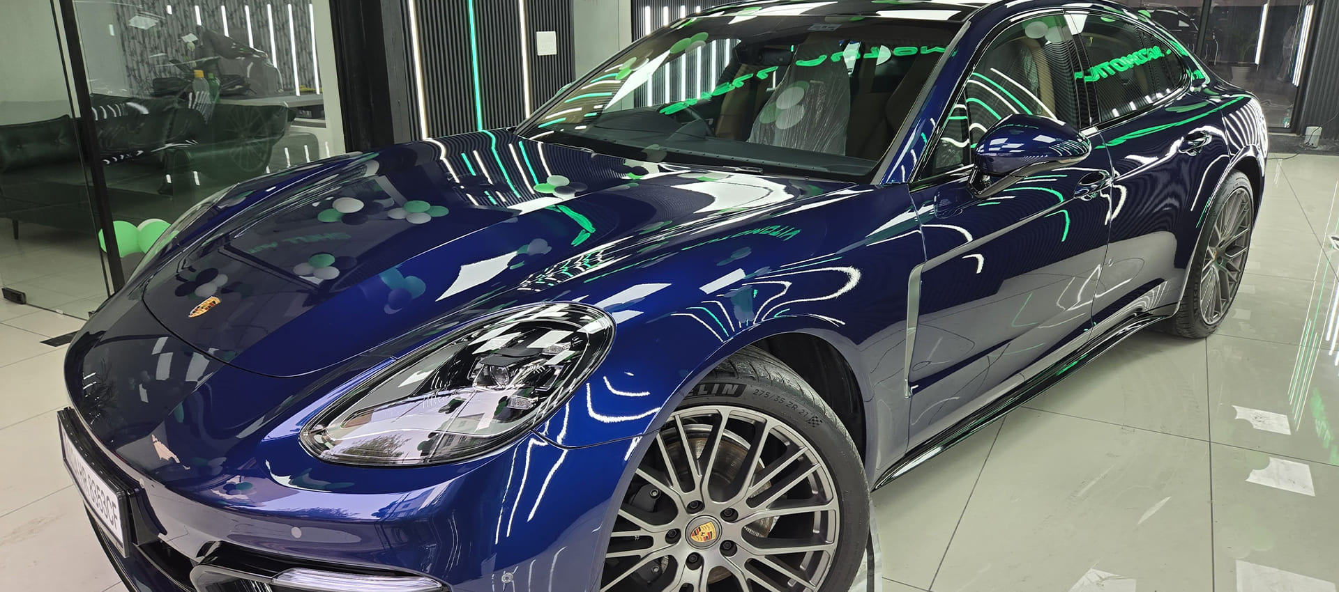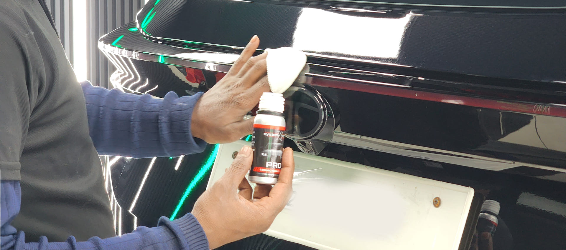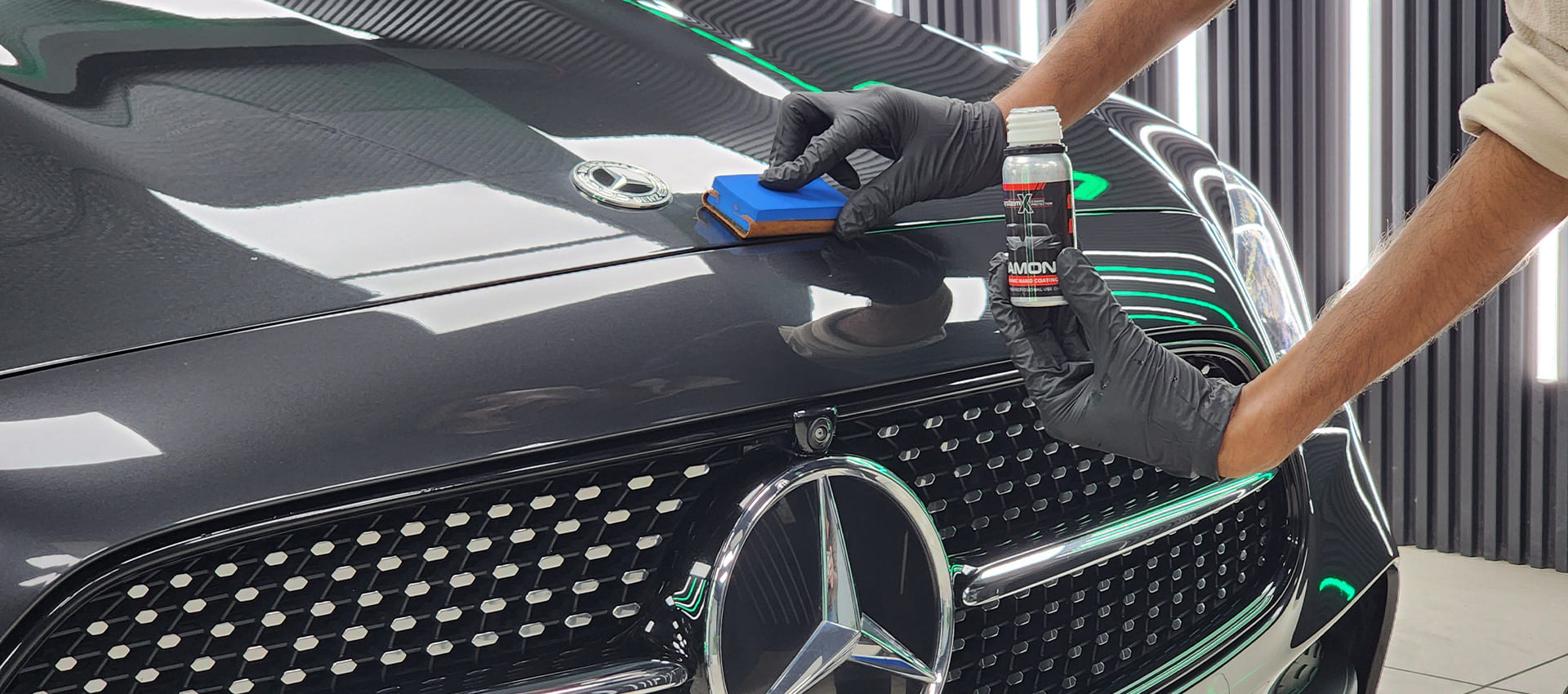 The ceramic coating is evenly distributed across the entire vehicle, ensuring complete coverage and protection.